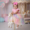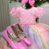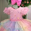 Vestido Aurora – Um arco-íris de encanto em cada camada! Um modelo que parece ter sido retirado direto de um sonho açucarado. O Vestido Aurora é perfeito para quem ama cor, leveza e aquele toque mágico que transforma qualquer festa em um espetáculo. Com sua paleta candy super suave e a saia em camadas de tule multicolorido, ele combina com vários temas infantis, criando um visual cheio de fantasia e alegria. Detalhes que fazem brilhar: • Busto matelassado com aplicação de bolinhas coloridas, deixando tudo ainda mais lúdico• Manguinhas fofas com pompons delicados• Cintura bordada em pérolas rosadas para um charme extra• <strong data-start="788" data-end="828" data-is- Temas perfeitos para usar o Aurora:Chuva de Benção, Chuva de Amores, Circo, Candy, Doceria, Tie Dye, Unicórnio, Arco Iris e Fest Colors. <p data-start="1076" data-end="1193" data-is-last-node="" data-is- Informações Importantes As medidas podem variar em até 2cm. Recomendamos sempre consultar a tabela de medidas antes da compra para evitar erros. Tecido 100% poliester Para um volume extra, indicamos o uso de saiote de armação, vendido separadamente na categoria Acessórios. Tiara e outros acessórios não acompanham o produto, mas estão disponíveis em nosso site. Calçado vendido separadamente, disponível na categoria Calçados As cores do produto podem sofrer variações de tonalidade conforme a configuração da tela do seu dispositivo. <p data-start="1076" data-end="1193" data-is-last-node="" data-is-